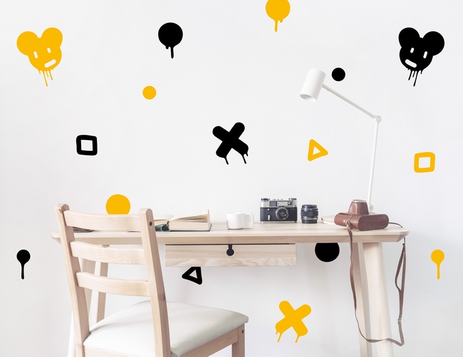 Das Wandtattoo „Graffiti-Style“ verziert Deine Wand mit zahlreichen kleinen Einzeldesigns im Stil eines klassischen Graffitis.