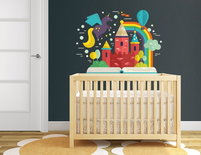 Unser Wandtattoo "The Magic Book" lädt zum Träumen ein und entführt uns in die fantasievolle Welt der Märchen. Erinnerungen werden wach, als noch Geschichten vorgelesen wurden und man spannenden Begebenheiten aus alten Zeiten lauschen konnte – was gibt es Schöneres? Bei unserem ‚magischen Buch‘ denken wir sofort an einen Scherenschnitt, dessen Design an Pop-up Bücher angelehnt ist. Einhorn, Schloss, Regenbogen – diesem Wandtattoo fehlt es an nichts! Eine zauberhafte Dekoration für kleine und große Märchen-Fans. Hättest Du's gewusst: Ein Pop-up Buch oder besser gesagt ein Aufklapp-Bilderbuch, ist ein Buch, dessen Seiten gefaltete Elemente enthalten, die beim Aufschlagen ‚herausspringen‘ und somit räumlich und plastisch erscheinen. Einige Elemente können mit einem Papphebel hin und her geschoben werden oder Türchen lassen sich öffnen und schließen.