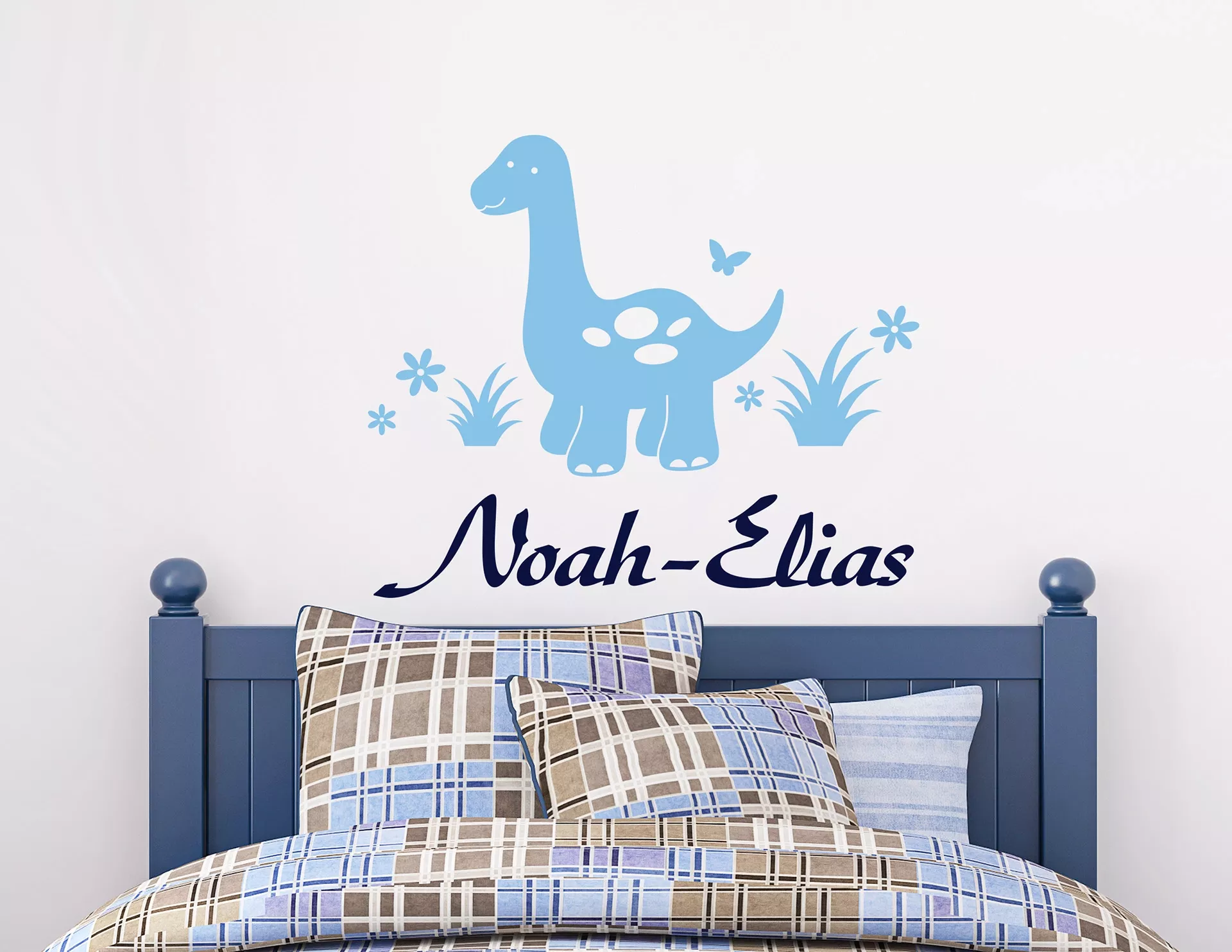 Das tierisch süße Wandtattoo "Der kleine Dino" verwandelt Dein Kinderzimmer spielend leicht in eine urzeitliche Tierwelt.