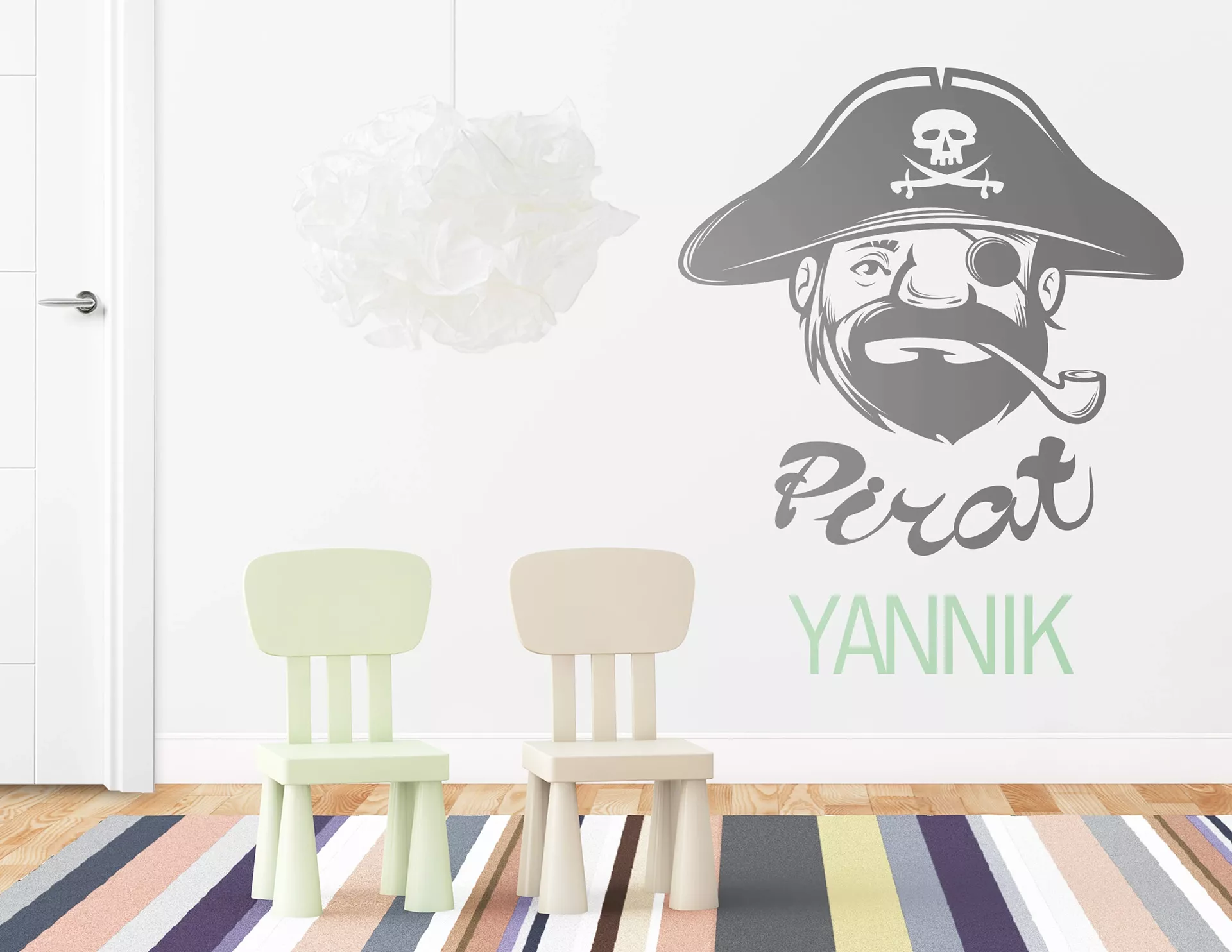 Wandtattoo „Pirat mit Pfeife“ macht die Meere unsicher. Ein Muss für alle kleinen Piraten + mit Wunschnamen.