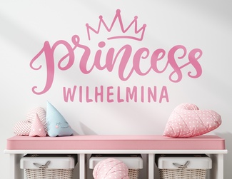 Unser Wandtattoo Princess Marvellous im Handlettering-Stil samt Krone, Spruch plus Wunschnamen – perfekt für kleine königliche Hoheiten.