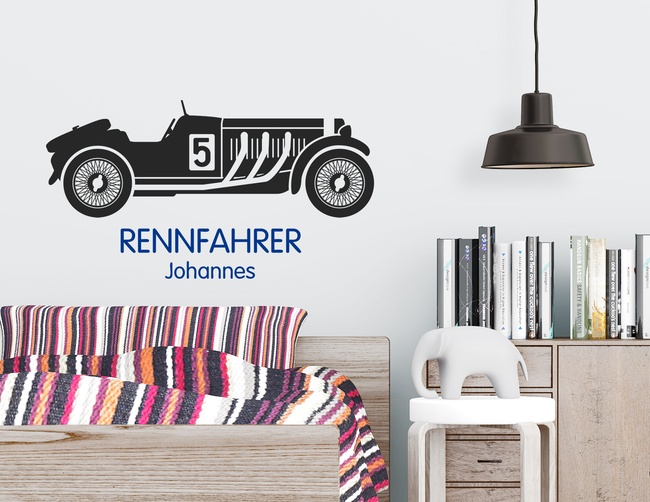Rennfahrer - Wandtattoo mit Wunschname für echte Auto-Fans