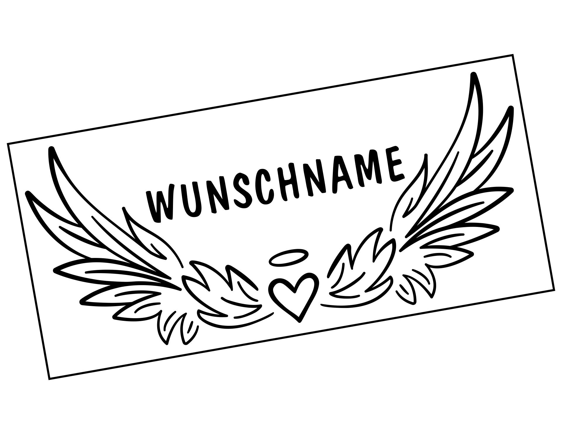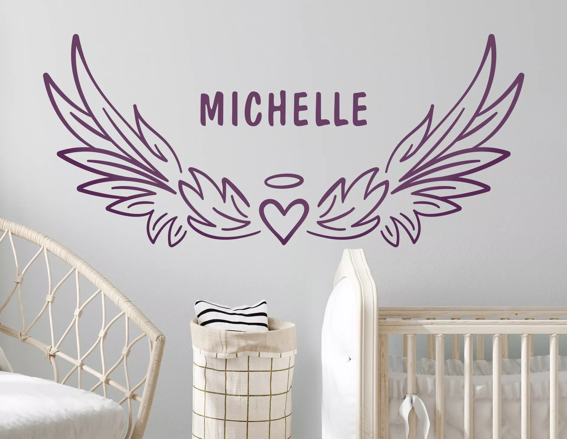 Für alle geliebten Wunschkinder: Wandtattoo "Unser Engelchen" mit Flügeln, Heiligenschein und Herz, das obendrein aus dem Kindernamen eine engelsgleiche Dekoration macht.