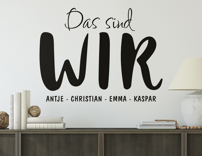 Mit Familiensinn: Das grafische Wandtattoo "Das sind WIR" verschönert jeden Flur und nennt alle Familienmitglieder persönlich beim Namen....