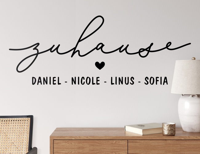 Zuhause! In schönen großen Lettern – für die Wand. Daheim wollen wir es warm und wohnlich haben, gemütlich soll es natürlich auch sein. Ein heimeliger Platz zum Wohlfühlen eben – gerne mit individuellem Touch. Was man dafür braucht? Viel Herz und ein personalisiertes Text-Design mit Platz für viele Namen, welches schon im Eingangsbereich für Furore sorgt – und damit Gäste, Freunde und Familienmitglieder zu begrüßen, ist doch das Allerbeste… Wandtattoo "ZUHAUSE Letters"!