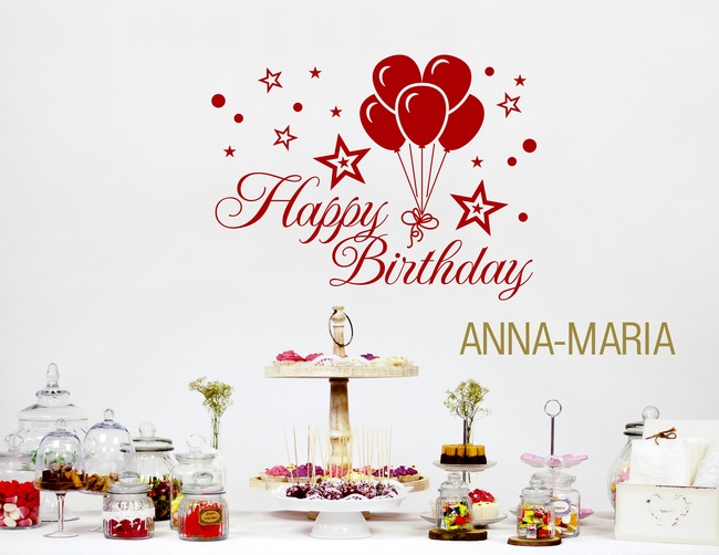 Happy Birthday - Wandtattoo mit Wunschname für die Party
