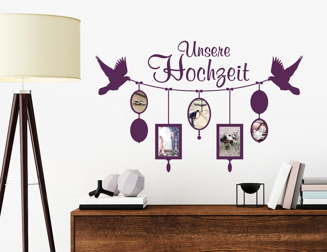 Wandtattoo Unsere Hochzeit- mit 7 Bilderrahmen für Fotos