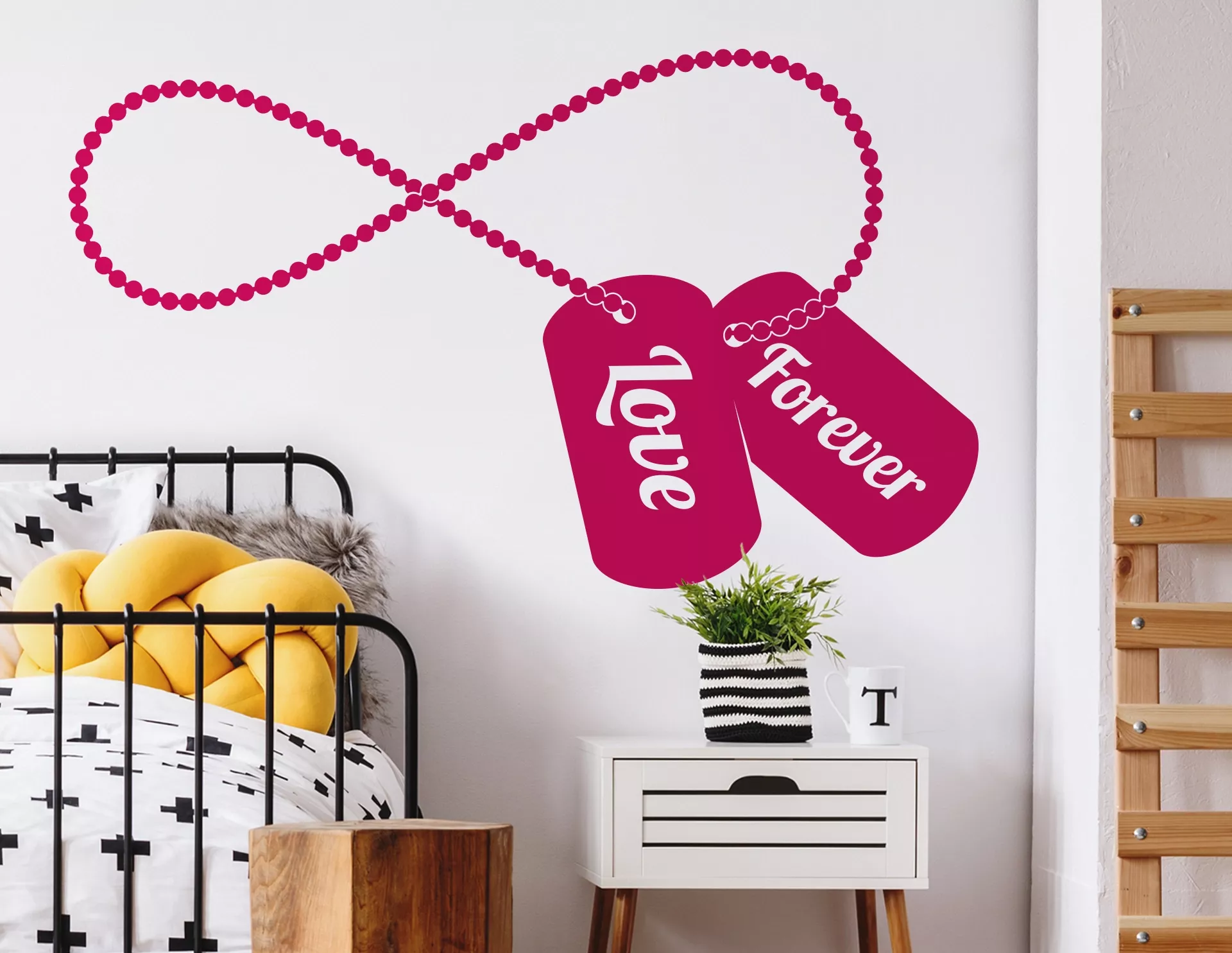 Mit diesem eindrucksvollen Motiv-Aufkleber lassen sich ganz einfach coole Statement-Wände gestalten. Eine bezaubernd schöne Liebeserklärung oder auch als schöne Geschenkidee für die Liebsten, welche mehr sagt als tausend Worte… – unser Wandtattoo "Infinity Forever Love"!