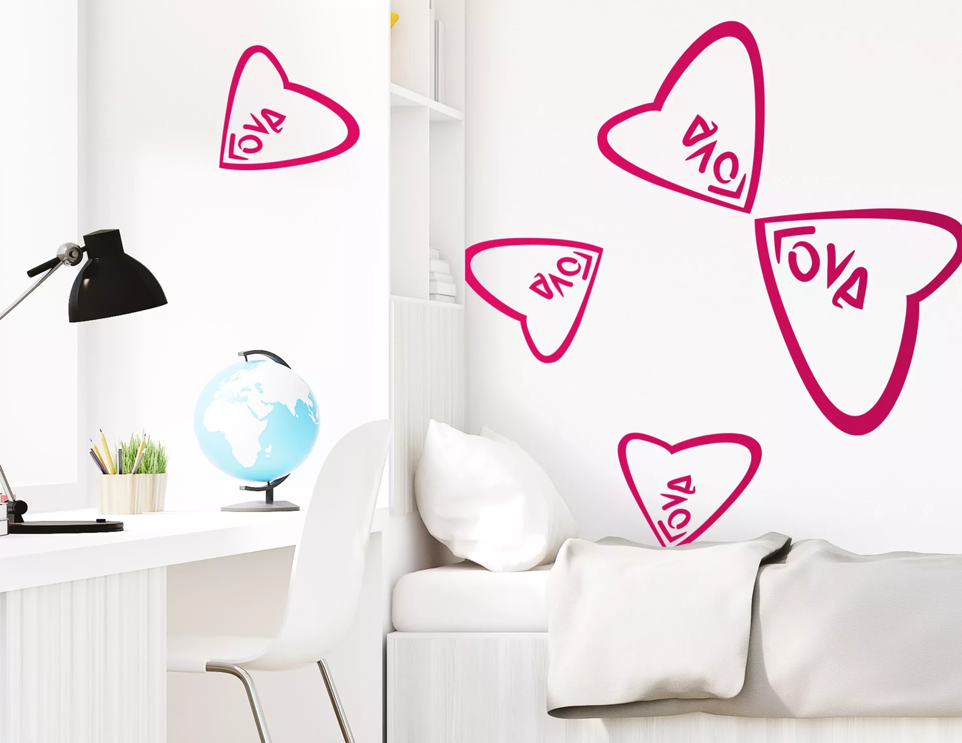 Unser Wandtattoo „Schmetterlinge im Bauch“ beweist: wer seinen Gefühlen und der eigenen Liebe Ausdruck verleihen will, muss nicht immer zu kitschigen Symbolen und Bedeutungen greifen. Mit unserem Wandtattoo lässt sich die klassische Romantik, die von Herzen ausgeht, auf eine puristische und moderne Art in die Wohnung tragen. Besonders schön kommen die Herzformen im asymmetrischen Stil zur Geltung, aber auch der Graffiti-Schriftzug „Love“, der sich in den verschieden großen Herzen befindet setzt tolle Akzente. So schafft man ein Wanddesign, das in jeden Raum passt und nicht zu dominant wirkt.