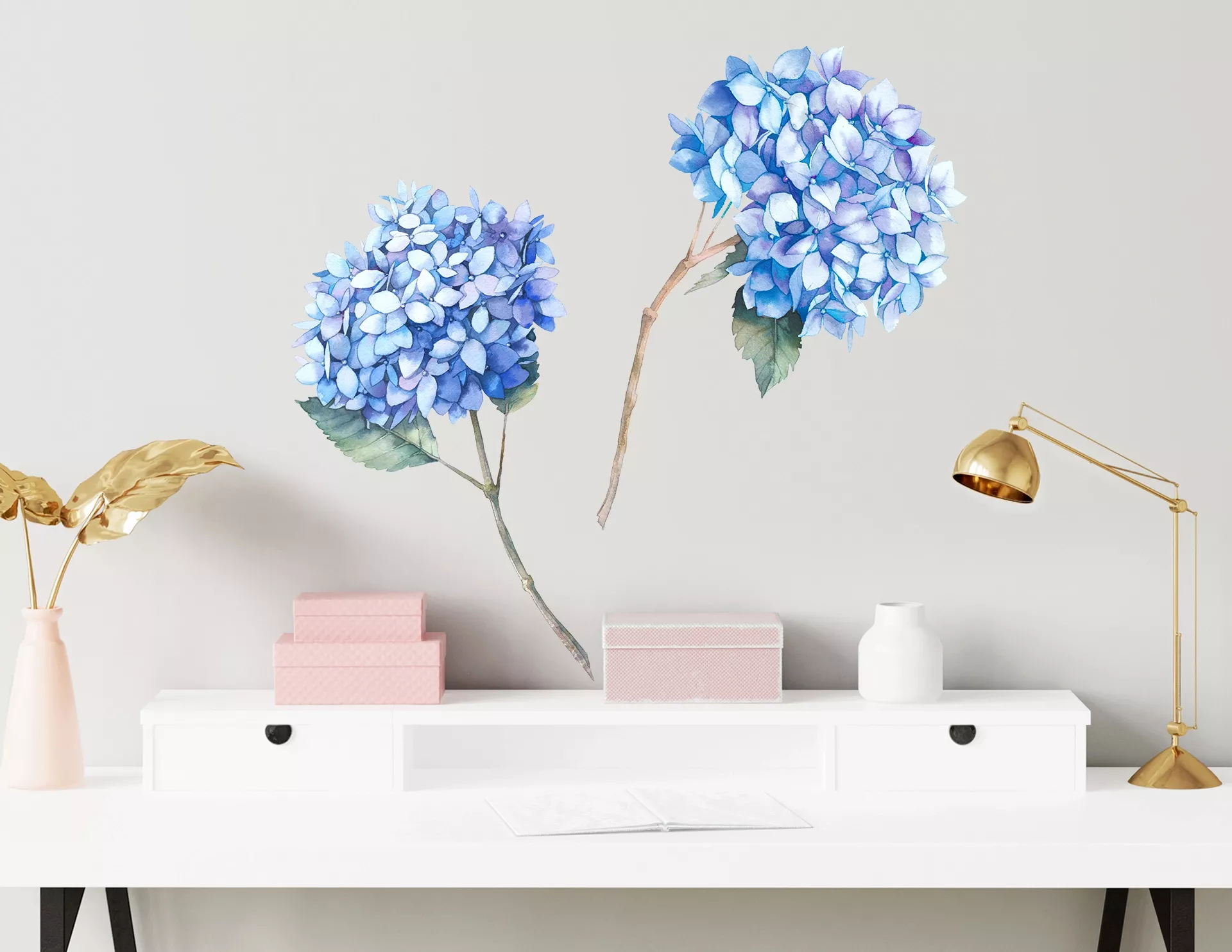 Wandtattoo Blaue Hortensien Aquarell
