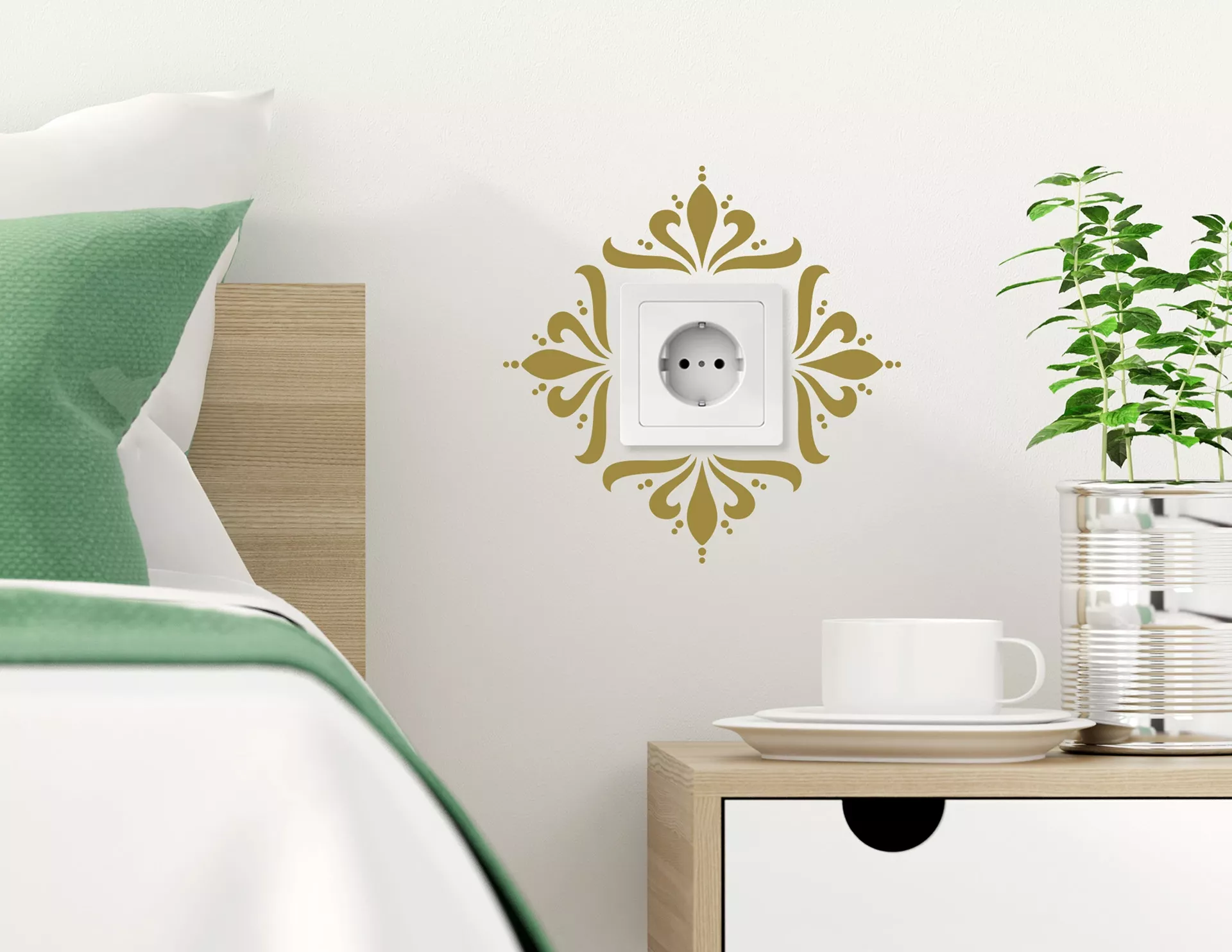 Kleine Idee mit großer Wirkung: Das Wandtattoo „Blüten-Ornament“ für Lichtschalter und Steckdosen verleiht jedem Raum eine klassische Note. Mit der Eleganz aus vergangenen Zeiten kannst Du nun alle Schalter und Dosen umrahmen und ein echtes Highlight setzen. Unser Tipp: Steckdosenaufkleber erinnern Dich daran, das Licht auszumachen oder das Stromkabel zu ziehen. Damit schützt Du die Umwelt und sparst bei den Stromkosten. Und zum Schutz der Kleinsten die Kindersicherungen nicht vergessen.