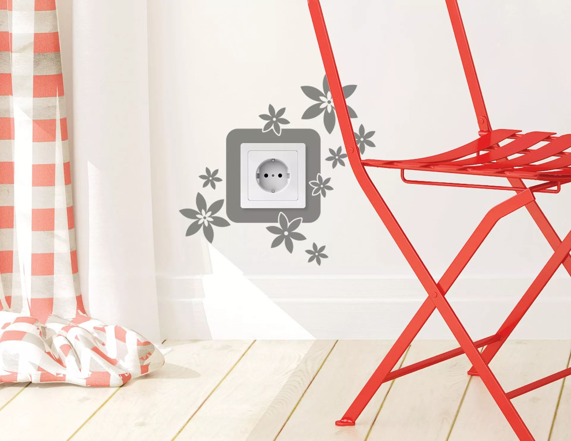 Schön und praktisch - Strom sparen und die Wände vor Schmutz schützen mit dem blumigen Wandtattoo für Lichtschalter und Steckdosen „Blütenrahmen #1“.