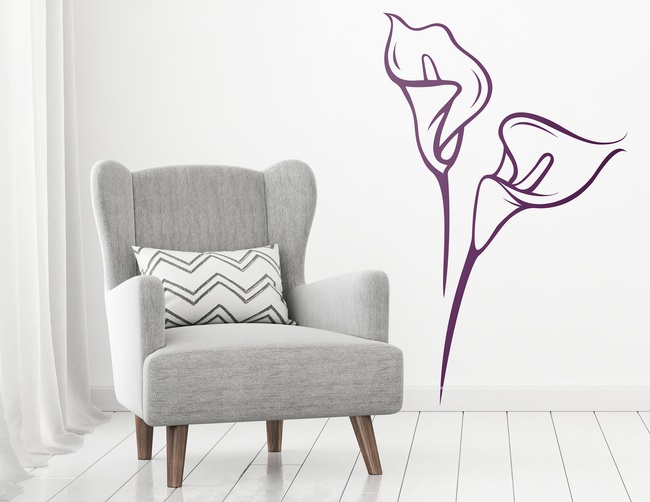 Das Wandtattoo „Calla“ zeigt Silhouette der stilvollen Blüten der Calla-Pflanze, die für Schönheit, Bewunderung und Weiblichkeit stehen.