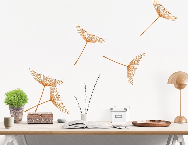 Das Wandtattoo „Schirmchen“ zeigt die Ableger der Pusteblume und symbolisiert so Fernweh, Freiheit und den Drang die Welt zu erkunden.