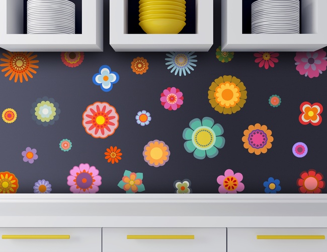 Nicht zufällig erinnern diese Sticker an die erfolgreichen Pril-Blumen, die die Küchen und Bäder unserer Mütter und Großmütter in den 60s, 70s und 80s verzierten. Und so bringen diese farbenfrohen „Vintage Flowers“ als Wandtattoo noch heute florale Lebensfreude zu Dir nach Hause.