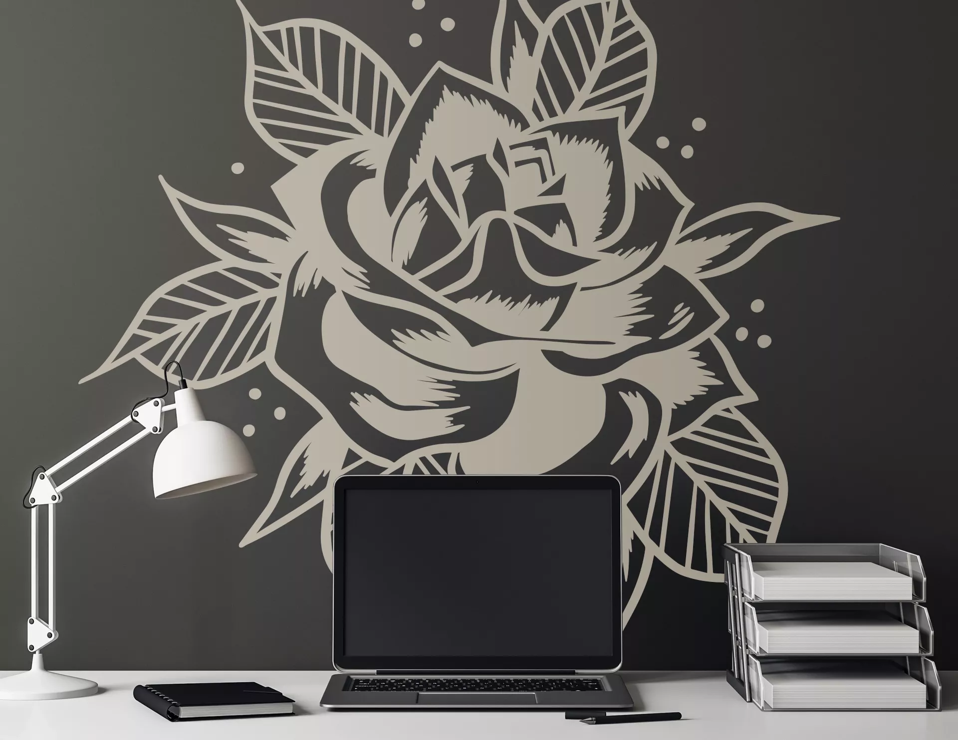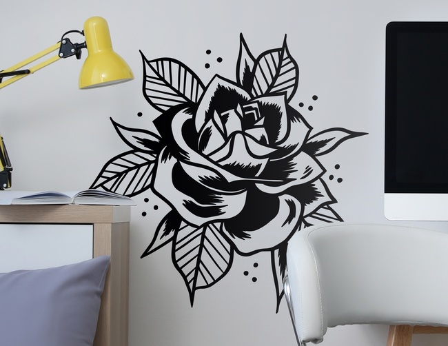Im Namen der Rose: Verbindet einen klassischen Tattoo-Stil mit der Königin der Blumen – unser Wandtattoo Vintage Tattoo Rose als romantischen Stimmungsmacher für Wände, Türen & Co.