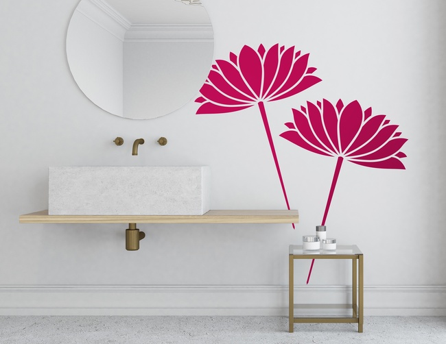 Manchmal darf es ruhig etwas mehr sein: Mehr Farbe, mehr Blüten, mehr Pracht. Dazu passen perfekt die zwei ausladenden Blumen-Fächer unseres Wandtattoos "Wasserlilien Hanako". Auf Blattgrün und anderen Firlefanz wird bewusst verzichtet, denn so bleibt, trotz üppiger Blütenköpfe, der Gesamteindruck des Designs angenehm reduziert.