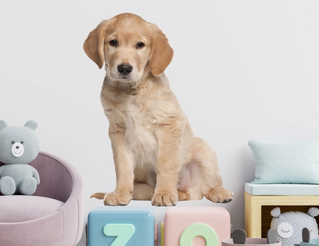 Wandtattoo "Golden Retriever Welpe Miro": Ein tierisch guter Fotoaufkleber mit einem niedlichen Goldie samt sanfter Seele und Hundeblick für Dein Zuhause.