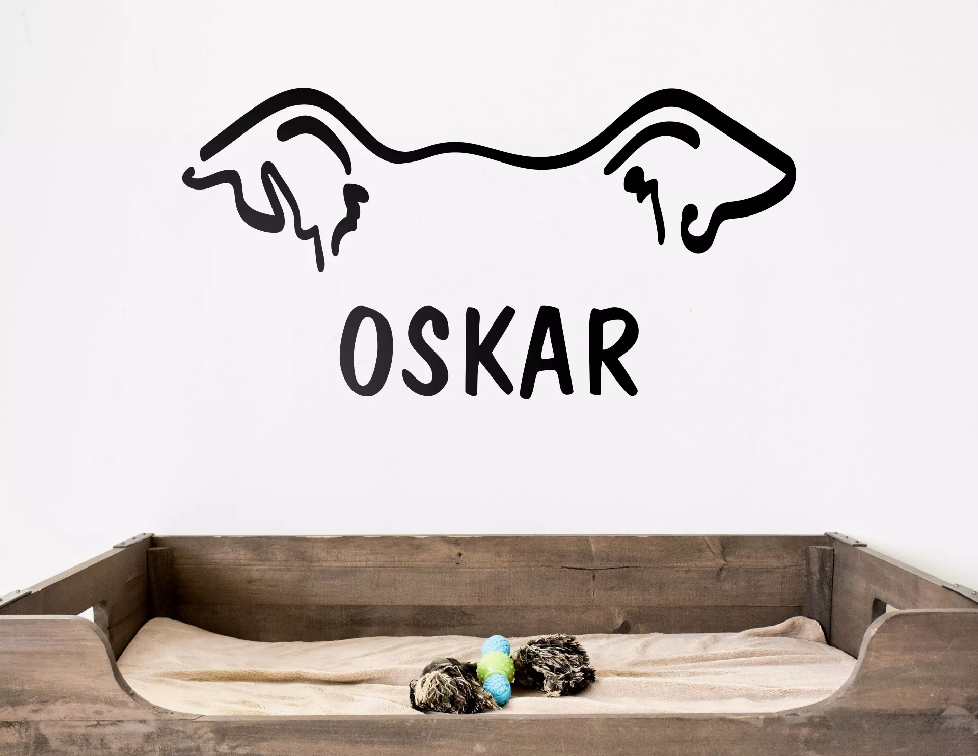 Die handgezeichnete Illustration wird mit dem Namen Deines Vierbeiners veredelt und schafft so einen individuellen und lustigen Hingucker über dem Körbchen oder Napf. Wandtattoo Hundeohren Bully & Co. – aus Liebe zum Hund.