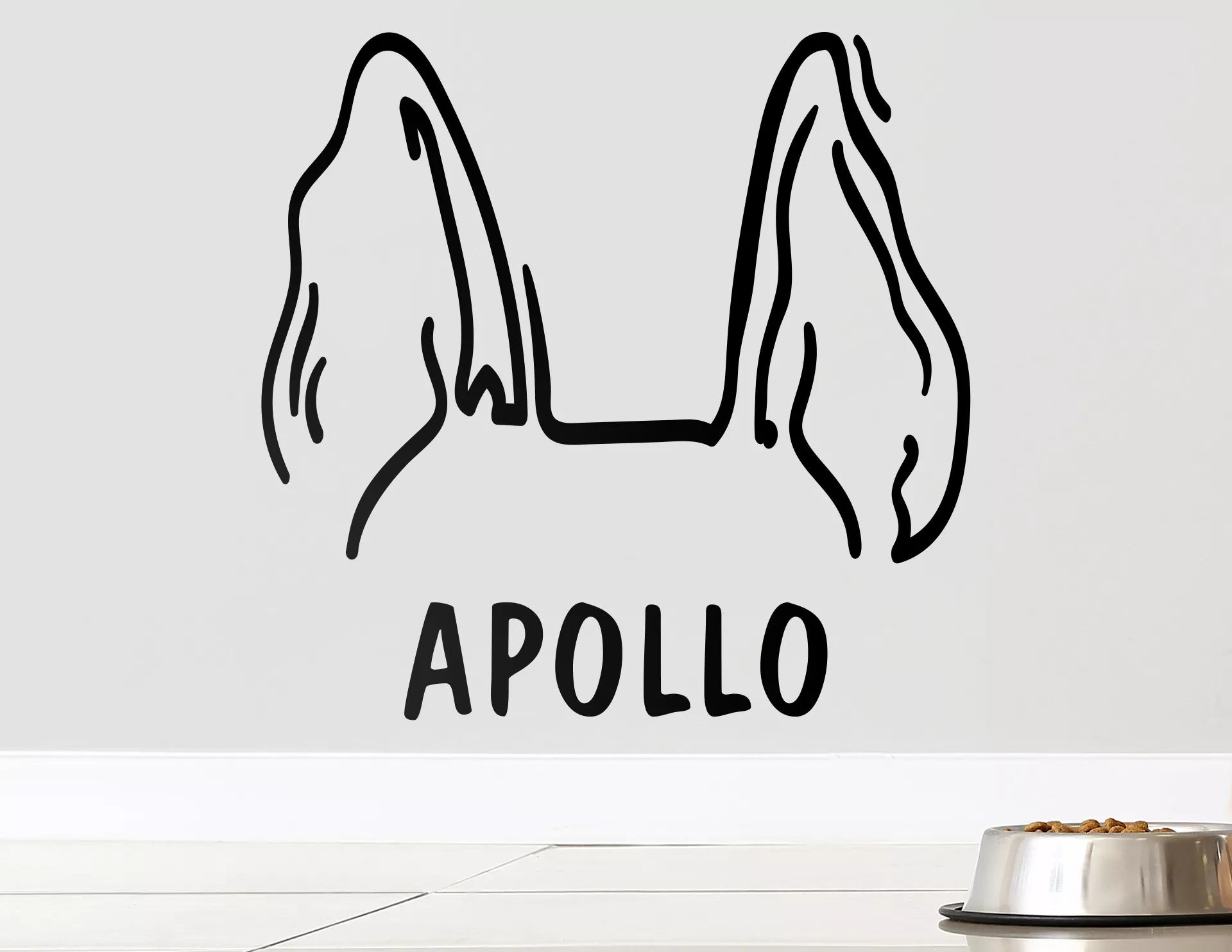 Diese markanten Spitzohren werden bei uns zwar "Mali" genannt, können aber mit dem Namen Deines Hundes ganz leicht individualisiert werden. Perfekt für Hunde der Rasse Schäferhund, Malinois, Dobermann, Bull Terrier, Podenco,… und natürlich jedem süßen Mischlings-Mix mit großen, spitzen Ohren! Einfach über dem Körbchen oder Fressnapf anbringen und das Zuhause wird noch gemütlicher, für Deine Fellnase und Dich.