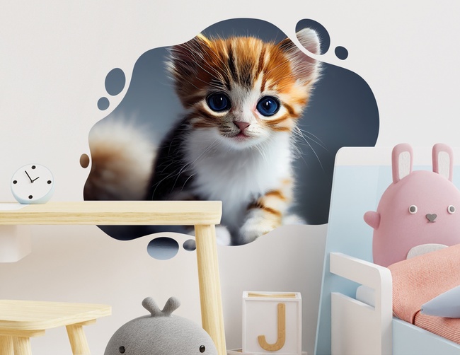 Dieser Stubentiger will es wissen: mit riesigen Augen wird geschaut, ob die Menscheneltern noch etwas Futter herausrücken. Aber wer könnte diesem süßen Blick schon widerstehen?! Das Wandtattoo mit dem gestreiften Kätzchen Candy wird alle Katzenfans verzaubern und dekoriert im Wolkenlook, mit ganz viel Tierliebe.