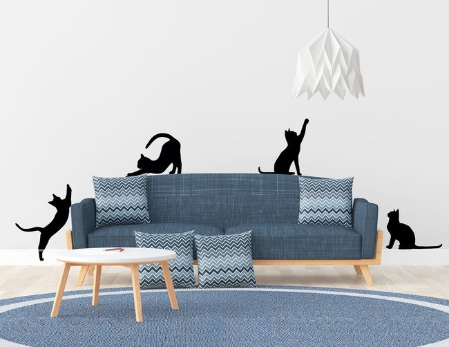 Unser Wandtattoo „Kätzchentreff“ ist nicht nur was für echte Katzenfans, sondern auch alle anderen Tierliebhaber. Es zeigt vier kleine Kitten, die durch die Wohnung tollen und mit allem spielen, was sie finden können. Sie lassen sich variabel in der ganzen Wohnung verteilen und setzen so tolle Akzente an jedem gewünschten Ort. Durch die verschiedenen Körperhaltungen eignen sie sich perfekt, um manche wie auf Schränken spielend, andere am Boden sitzend anzubringen und so das Ambiente jeden Raumes aufzulockern. Die Silhouette der schönen Tiere fällt durch eine kontraststarke Umsetzung sofort ins Auge und eignet sich hervorragend für jeden Raum.