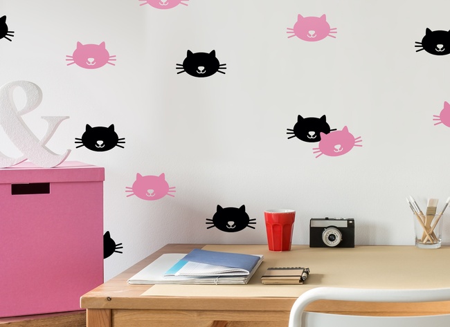 Das Wandtattoo „Meow“ ist eine wahre Streicheleinheit für jede Fläche, ob Wand oder Möbel. Zum Set gehören 36 Katzenköpfe.