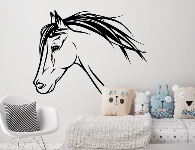 Das Wandtattoo „Pferd Ebony“ zeigt die imposante Darstellung eines Pferdekopfes. Das elegante Tier begeistert jeden Pferdefan.