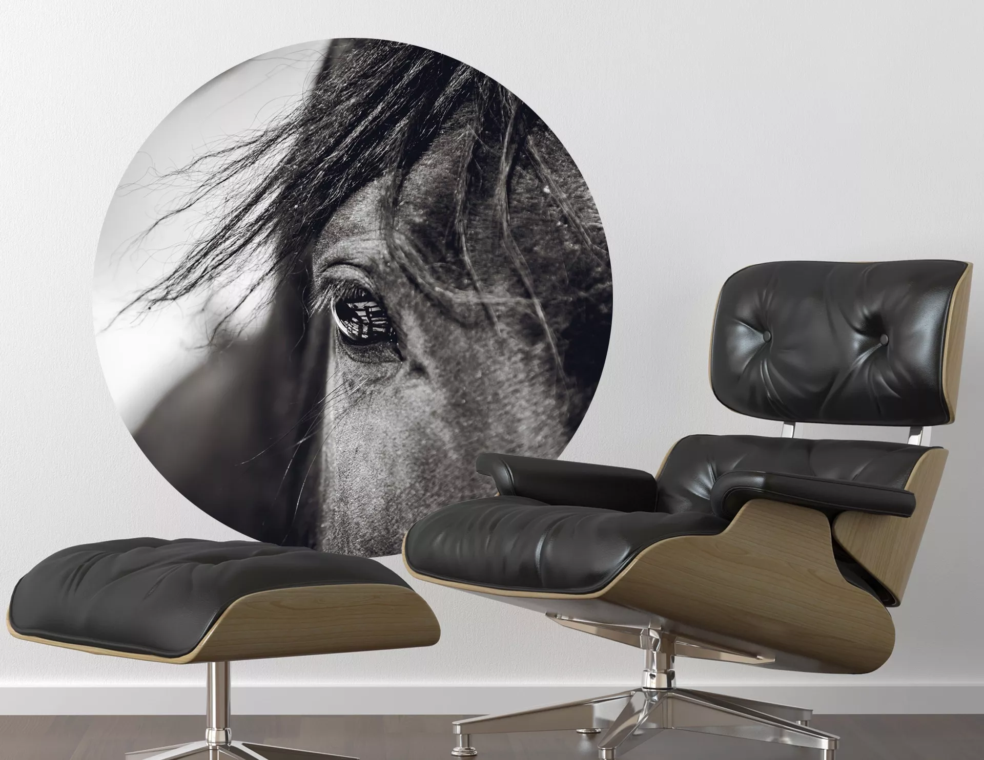 Wer kann diesem Pferdeblick schon widerstehen? Wandtattoo "Pferd Zeus": Ein kugelrunder Design-Aufkleber in edler Schwarz-Weiß-Optik mit einem eleganten Vollblut für Deine vier Wände.