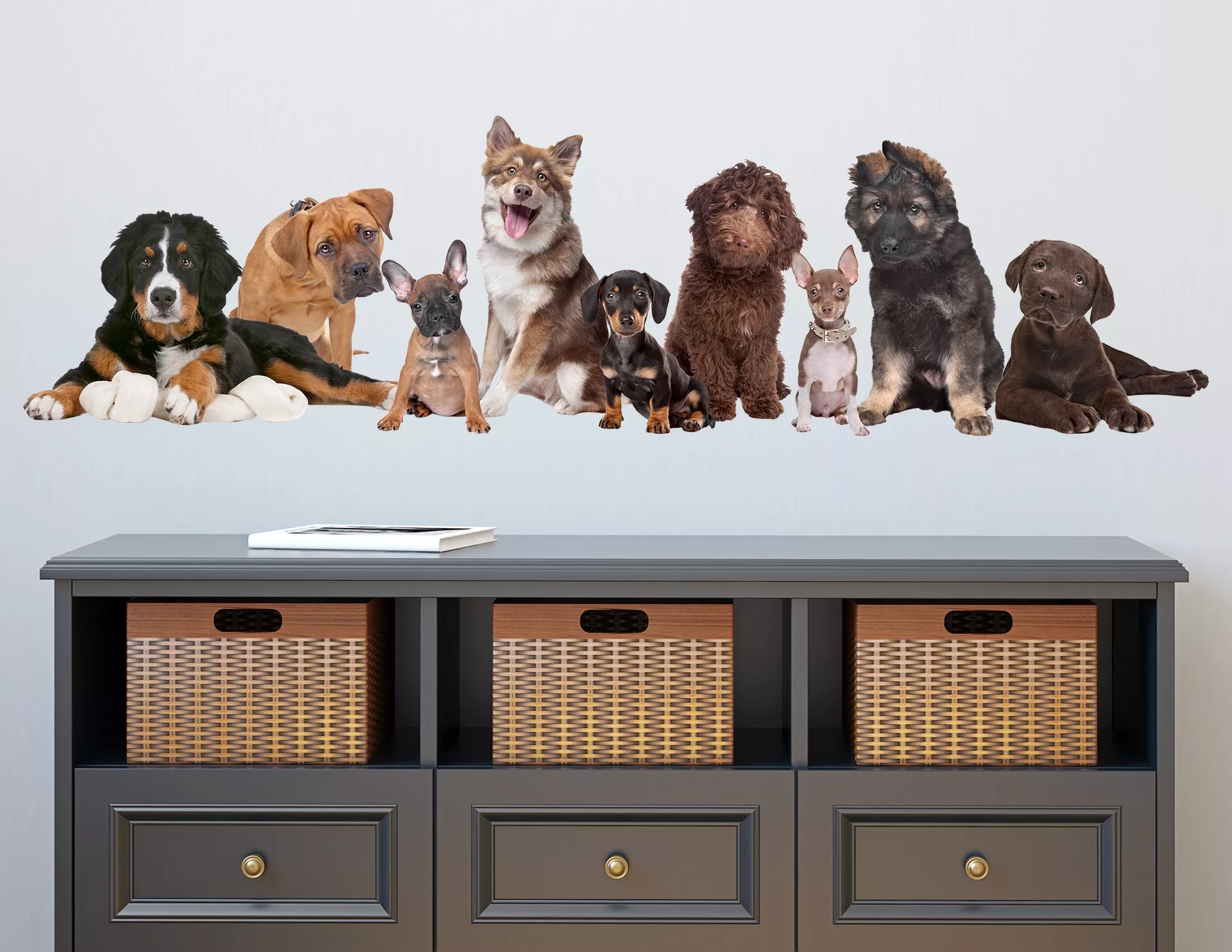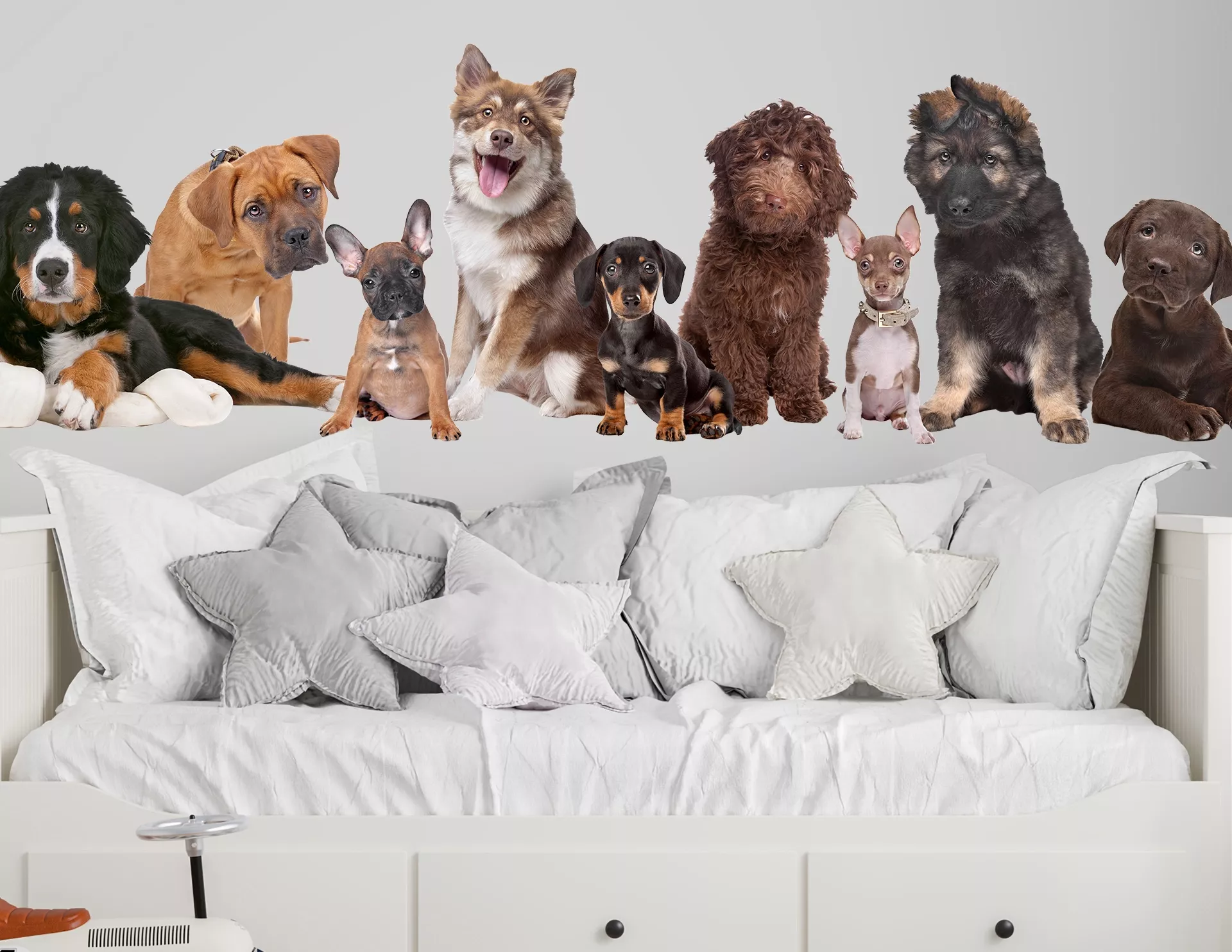 Ein tierisch guter Foto-Aufkleber mit 9 süßen Fellnasen: Berner Sennenhund, Rhodesian Ridgeback, Französische Bulldogge, Australian Shepherd, Dackel, Labradoodle, Chihuahua, Schäferhund und Labrador…