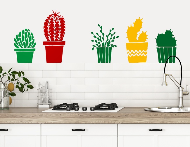 Das Wandtattoo „Familie Piks“ gibt auf malerische Art die schöne Optik der robusten Pflanzen wieder.