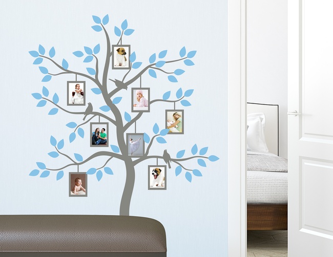 Wandtattoo Fotobaum Familie - mit 8 Bilderrahmen für Fotos