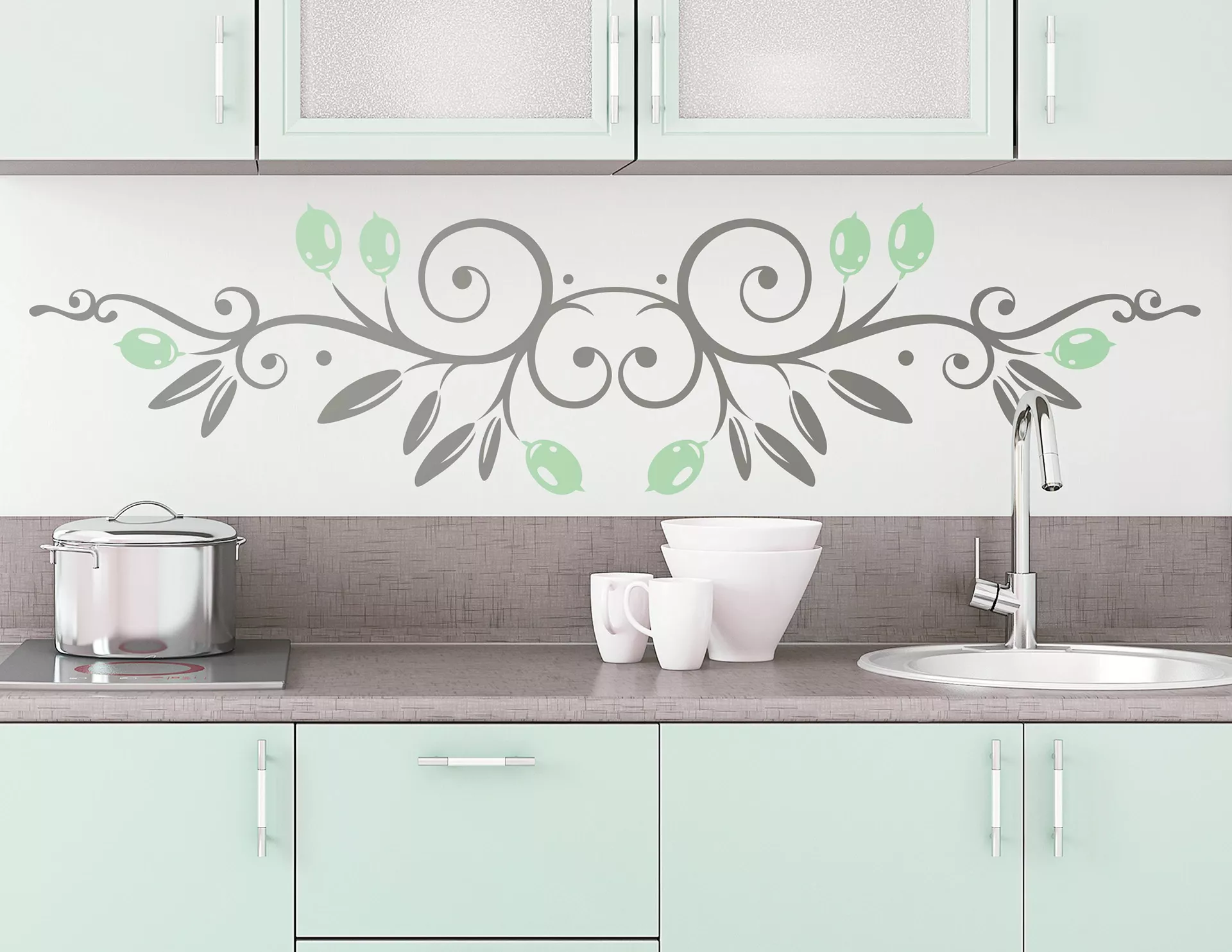Unser Wandtattoo „Olivenzweig“ zeigt sich durch seine geschwungene Gestaltung von seiner besten Seite. Die kleinen Oliven bilden ansprechende Details, die das schöne und zurückhaltende Wanddesign abrunden. Doch eine tolle Optik ist nicht alles, was das Wandtattoo zu bieten hat: es fährt auch mit einer tiefen Symbolik auf. So steht der Olivenzweig in zahlreichen Ländern und Kulturen für Frieden und Harmonie — etwas, was sich jeder für den eigenen Haushalt wünscht. Das macht den Olivenzweig zu einem tollen Wandtattoo, das sich in der Küche von seiner besten Seite zeigt, aber in jedem Raum eine ansprechende Bereicherung darstellt.