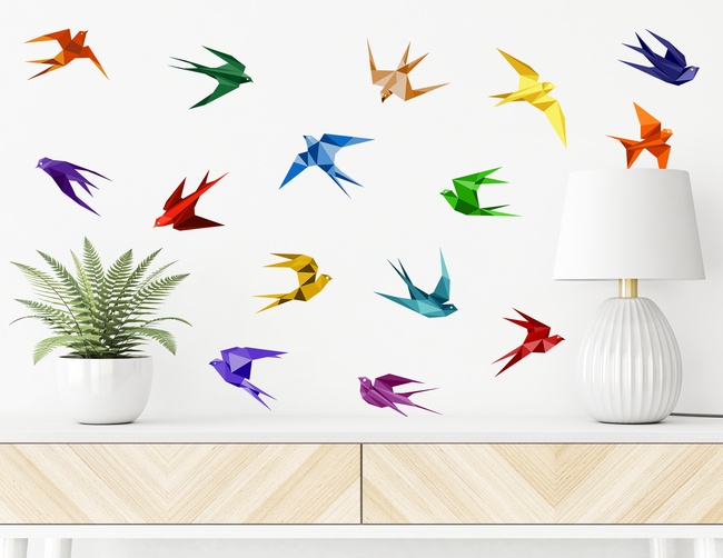 Anleitung für Wandtattoo Bunte Origami Schwalben