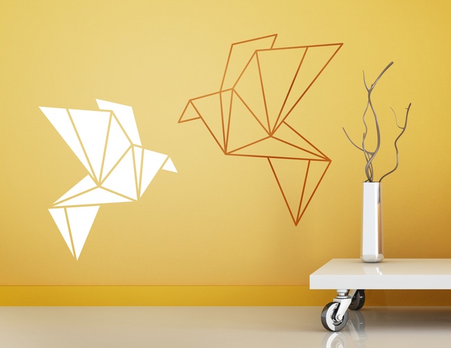 Die hohe Kunst des Faltens: Das Wandtattoo „Faltkunst-Tauben“. Im Origami symbolisiert die Taube Glauben und Vertrauen, in Japan gilt sie als Glücksbringer.