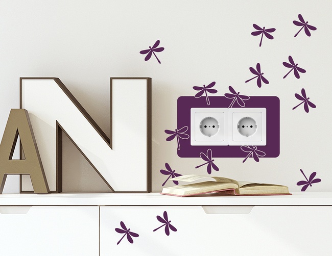 Das Wandtattoo „Libellen Ausflug“ setzt Steckdosen und Lichtschalter stilvoll in Szene. Die Libellen geben Deiner Wand sofort einen frischen Look.