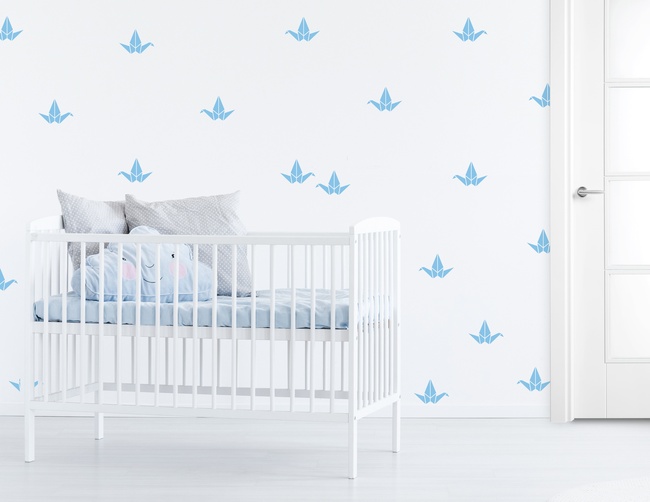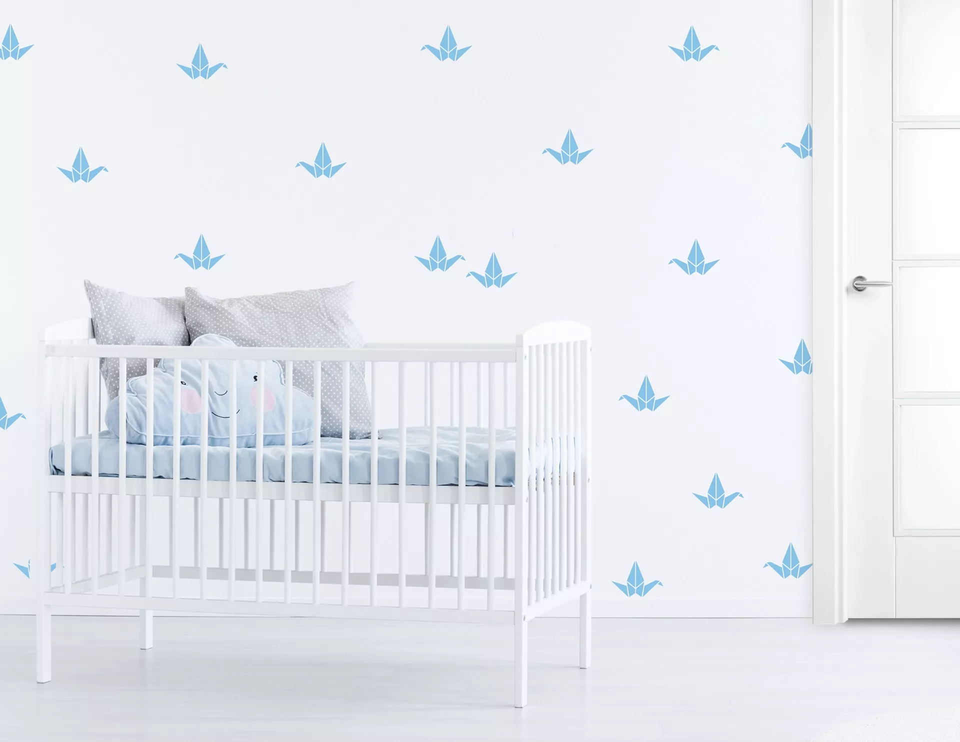Erfülle Dir einen Wunsch, mit dem Wandtattoo „Little Cranes“ im Origami-Stil. Im Set sind insgesamt 30 Kraniche enthalten, die Du frei verkleben kannst.