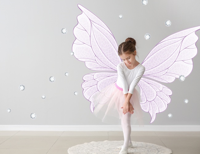 Du wolltest schon immer Dein eigenes "Magic Wings Mural" zuhause haben? Dann haben wir genau das richtige Motiv für Dich! 'Spread your wings and fly'! – Wandtattoo "Magic Wings & Diamonds": Ein inspirierendes Design, bestehend aus zwei niedlichen Flügeln und sechzehn Diamanten für Deine Fotowand, vor der nach Herzenslust posiert werden darf, Partyspaß nicht ausgeschlossen… Perfekt z.B. für kleine Feen, freche Fabelwesen, elegante Ballerinas und hübsche Schmetterlings-Prinzessinnen. Unser Tipp: Unser Wandbild funktioniert natürlich auch ohne Menschenkind, welches die Fantasie beflügelt und vielleicht der Auftakt vieler spannender Geschichten ist. Wer möchte, kann seine Schnappschüsse auch bei Instagram hochladen.