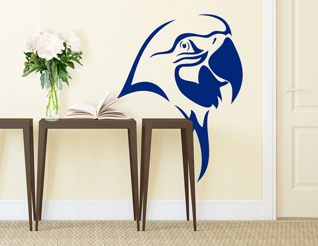 Das Wandtattoo Papagei Pit zeigt die Silhouette eines imposanten Papageien-Kopfes und versetzt jeden Betrachter sofort in tropische Urwälder.