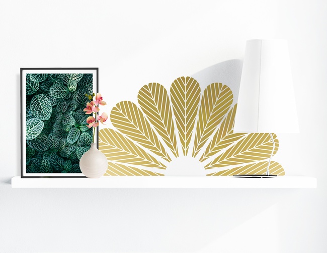 Macht aus einem simplen Regal ein echtes Schmuckstück. Das Wandtattoo „Pfau“ veredelt Konsole und Co. im Handumdrehen.