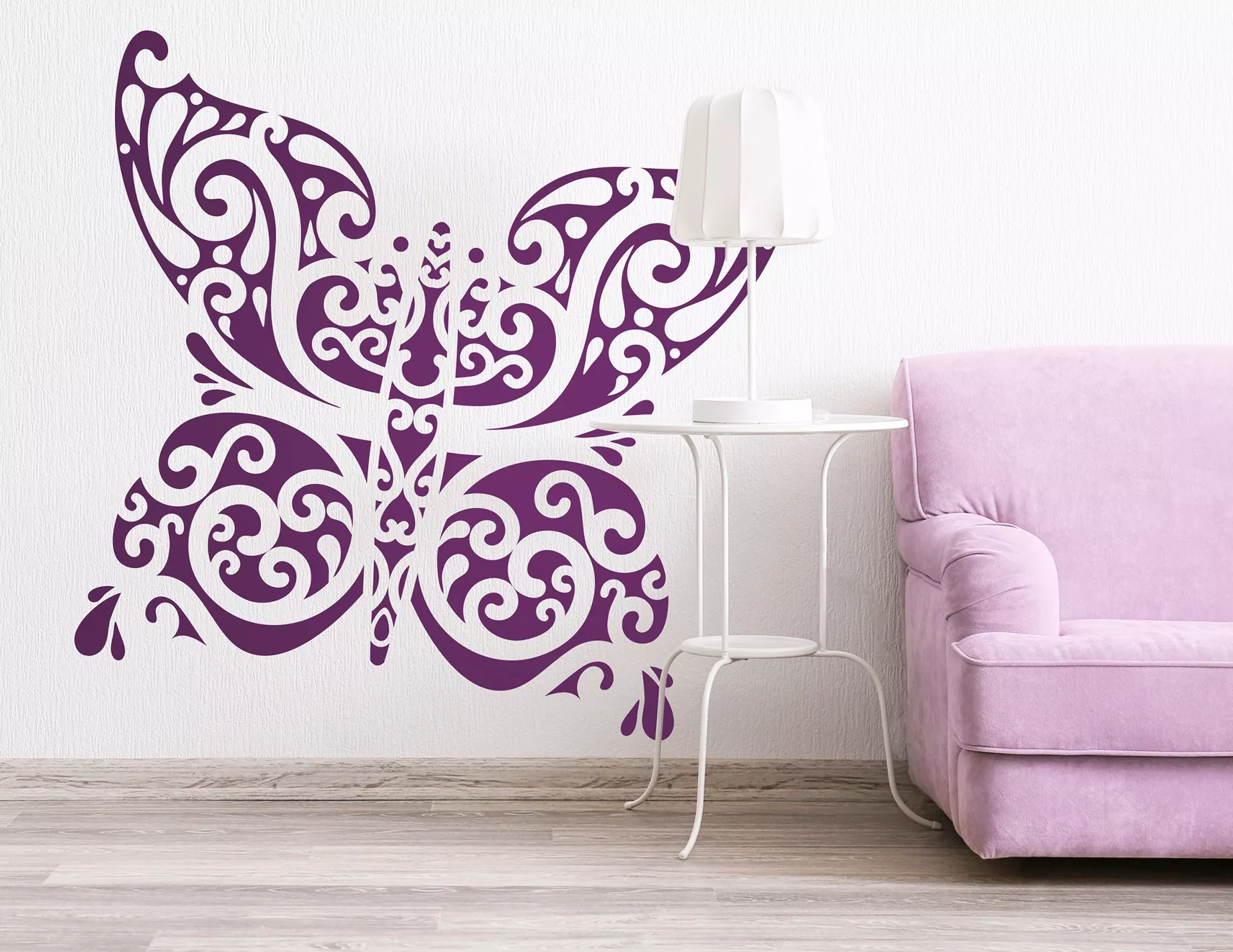 Das Wandtattoo „Schmetterling Fantasie“ kombiniert die Anmut eines Schmetterlings mit der ausdrucksstarken Kraft von Tribals.