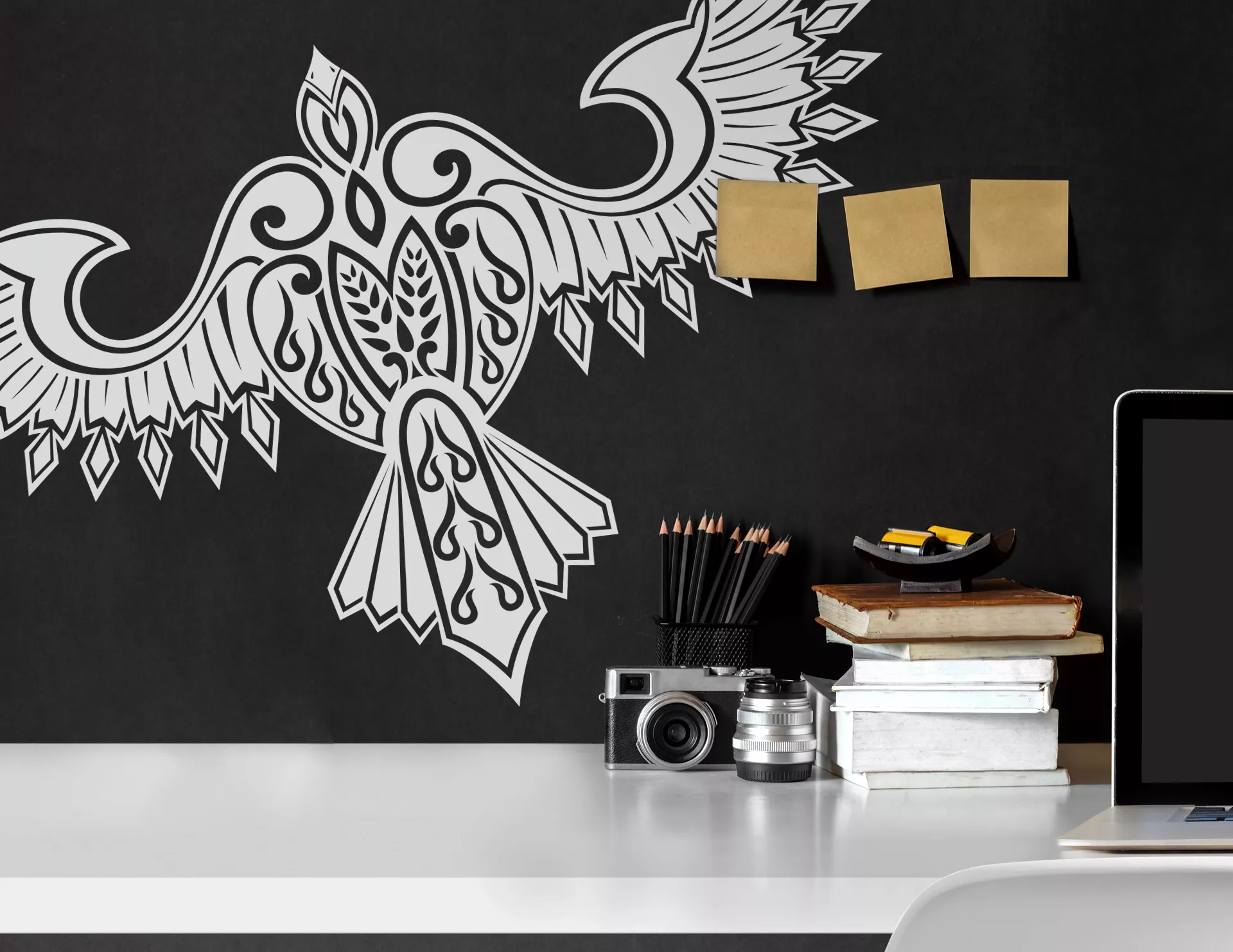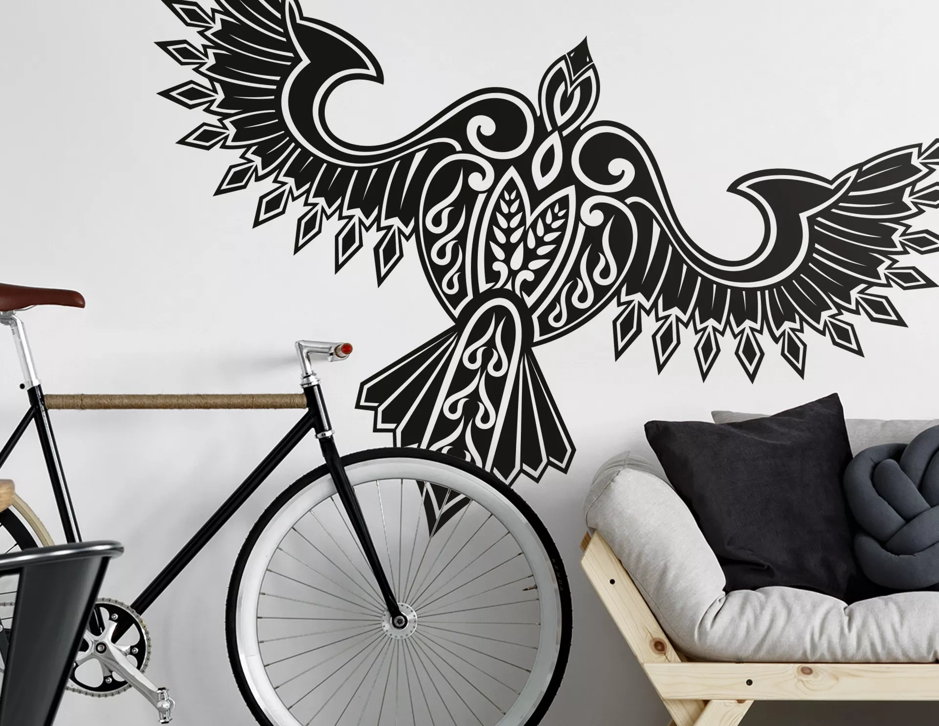 Verleihe Deinem Zuhause nordische Eleganz mit dem Viking Crow-Wandtattoo! Die Krähe, ein Symbol für Weisheit und Schutz in der Wikinger-Mythologie, wird hier mit keltischen Mustern dargestellt...
