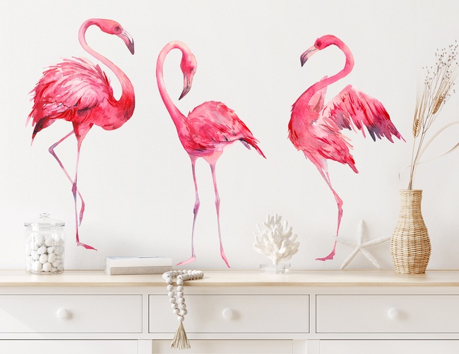 Sind sie nicht wunderschön? Diese eleganten Flamingos versprühen viel exotisches Flair und pure Sommerlaune an jeder Wand.