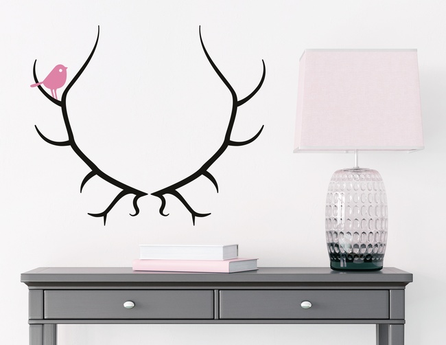 Da ruft der Wald, aber nur dezent: Wandtattoo Birdy Horns. Design mit Geweih und kleinem Vögelchen - einfach märchenhaft.