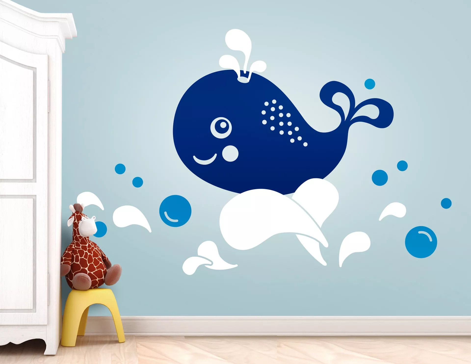 Das größte Säugetier der Welt planscht bald in Deinen vier Wänden. Mit dem Wandtattoo „Der kleine Wal“ kommen die Riesen der Weltmeere ins Kinderzimmer.