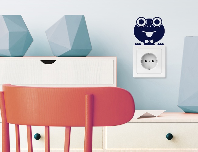 Das Wandtattoo „Frosch Freude“ macht Kindern jede Menge Spaß an der Wand und verleiht Steckdosen und Lichtschaltern ein niedliches Gesicht.