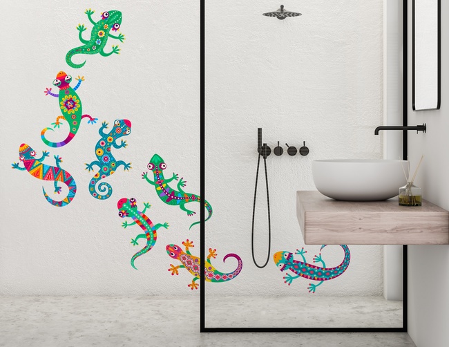 Musterrausch im Reptiliengehege! Diese bunten Geckos sind ein schöner Wandschmuck für Dein Zuhause. Egal ob im Flur, Bad oder auf Türen – diese lustigen Echsen, bunt bemalt mit mexikanischen Folklore-Mustern, bringen viel Freude ins Haus. Wandtattoo Funky Lizard: Einfach aufkleben und Spaß haben, so wünschen wir uns eine fröhliche DIY-Deko.