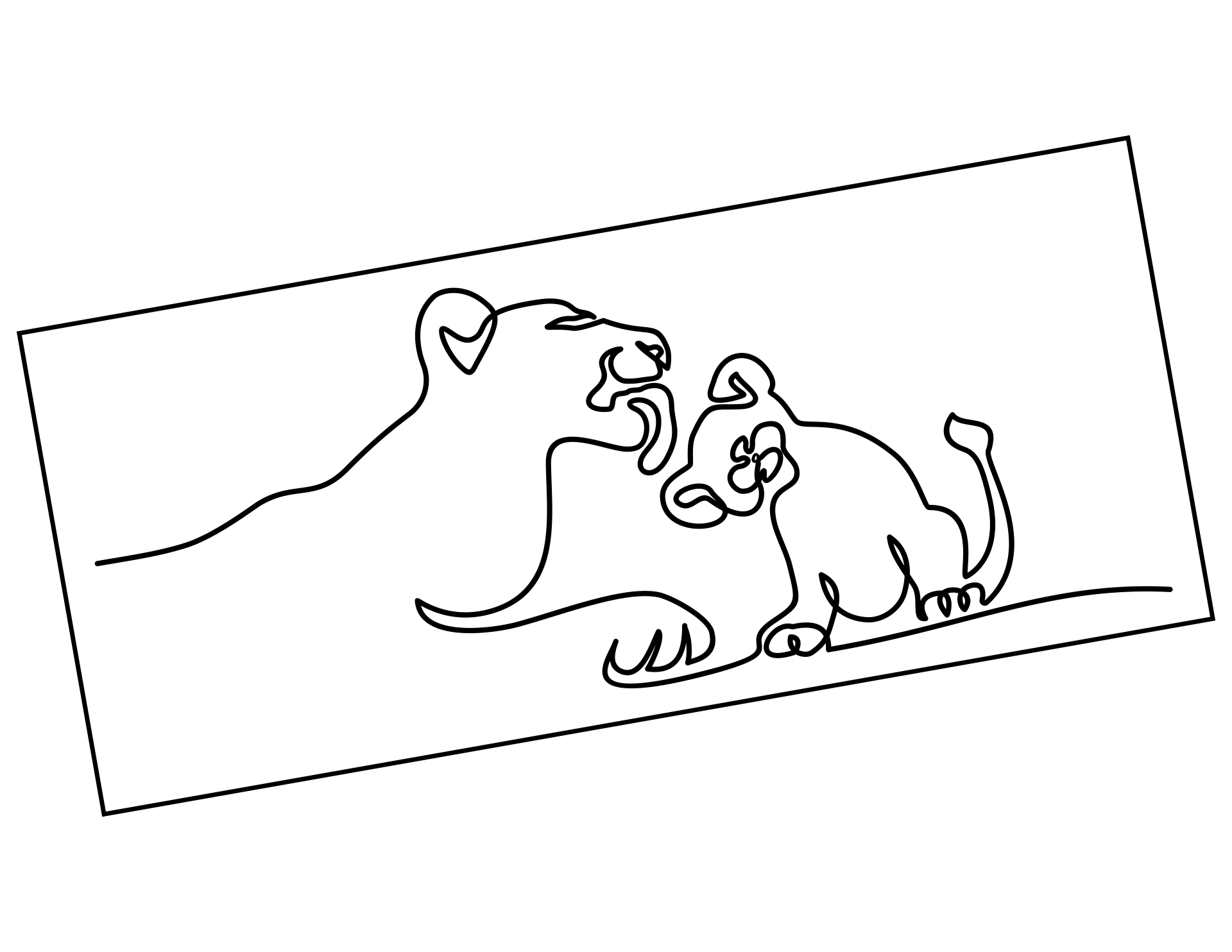 Anleitung für Wandtattoo One Line Art Lion & Baby