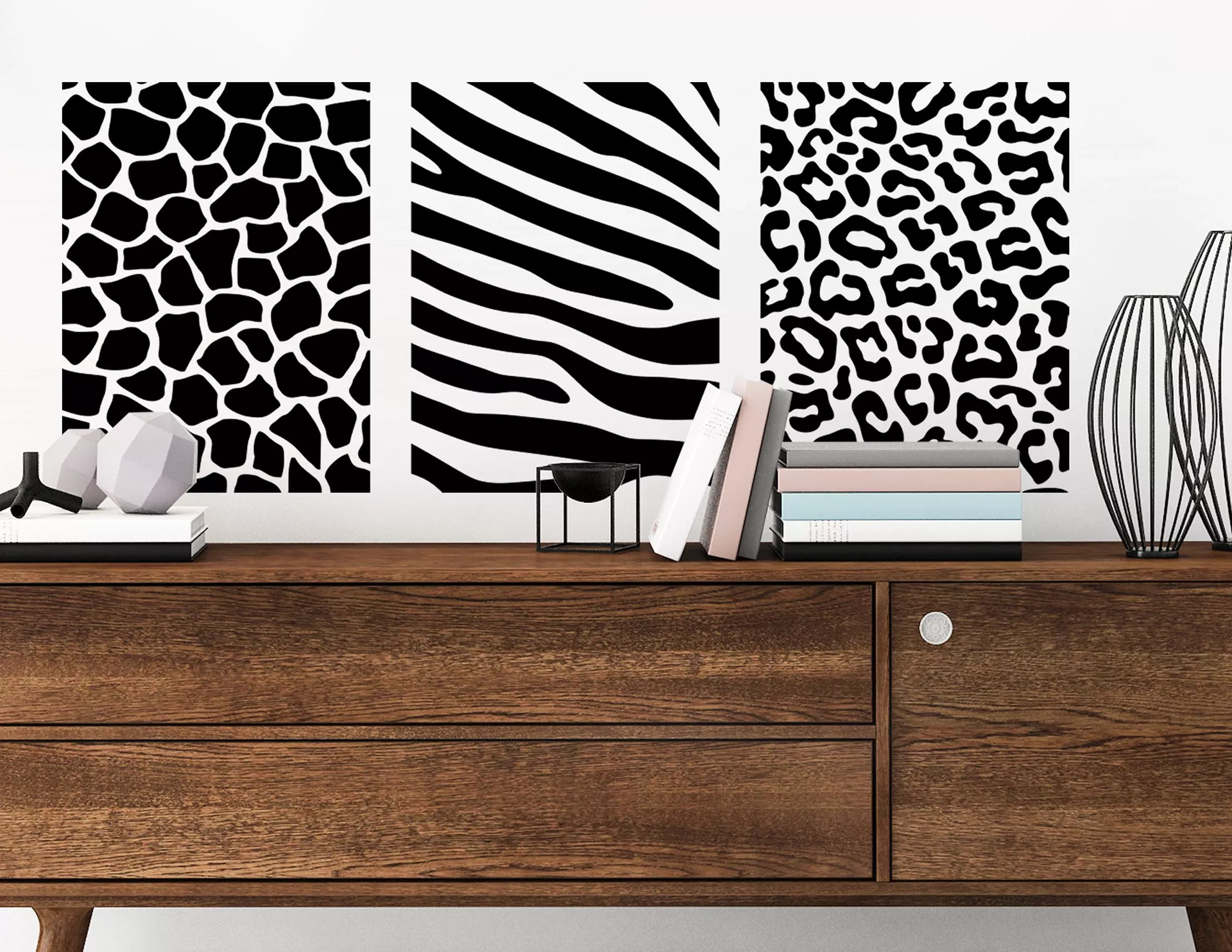 Wow! Dieses Wandtattoo hat Suchtcharakter! Das Wanddesign „Wildlife Pattern“ kann man gar nicht lange genug anschauen. Drei Animal Prints bringen exotisches Flair an Deine Wand und sehen einfach klasse aus. Dabei kannst Du selbst entscheiden, ob Du die Motive nebeneinander anbringst oder auseinander schneidest. Beides hat seinen Charme. Das Wandtattoo „Wildlife Pattern“ macht tierisch Spaß und bringt ein Stück Afrika zu Dir nach Hause. Egal ob Leopardenmuster, Zebrastreifen oder Giraffenstruktur – wir konnten uns bei dieser Deko einfach von keinem Design trennen.