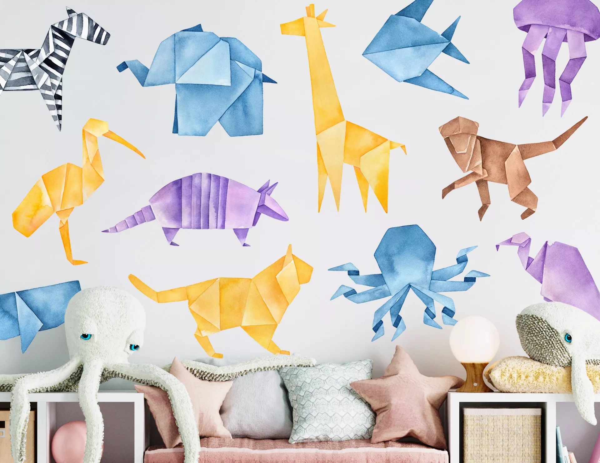 Das ist hier ja wie im Zoo… Affe, Elefant, Fisch, Geier, Giraffe, Gürteltier, Katze, Krake, Qualle, Storch, Wal und Zebra. Wer immer schon mal ein 'Zoogami Aquarell' an der Wand haben wollte, der macht mit diesem bunten 12-teiligen Wandtattoo alles richtig.